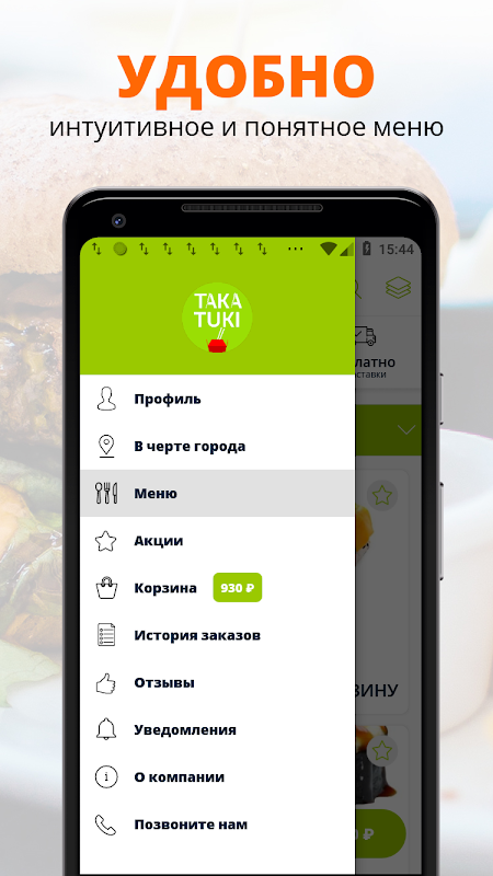 Скачайте приложение и заказывайте пиццы, суши, роллы, вок в 2 клика.
