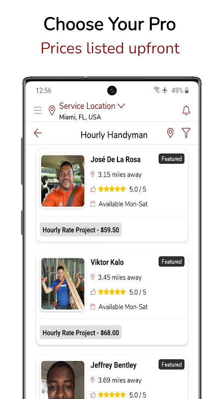 Tìm và thuê các chuyên gia địa phương cho bất kỳ dự án nào và nghiền nát danh sách việc cần làm của bạn. So sánh giá giữa các chuyên gia dịch vụ, đọc bài đánh giá, liên hệ với Chuyên gia và đặt vé Pro yêu thích của bạn trực tiếp trong ứng dụng.