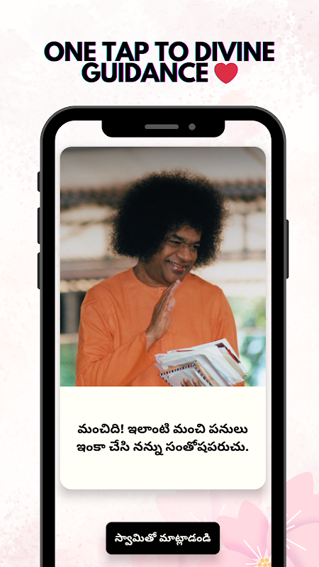 Bất cứ khi nào bạn đang tìm kiếm hướng dẫn, chỉ cần mở ứng dụng và nhấp vào nút. Một thông báo sẽ xuất hiện trên màn hình; hãy coi đó là câu trả lời yêu thương của Swami cho câu hỏi trong lòng bạn. Suy ngẫm về những thông điệp này có thể mang lại sự rõ ràng, bình an và hiểu biết sâu sắc về mặt tâm linh.