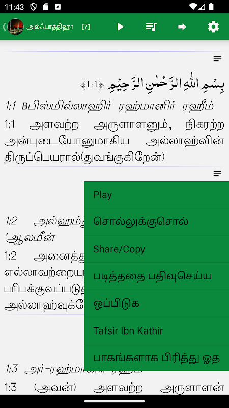 14. Chia sẻ âm thanh của Quran Qirath và bản dịch tiếng Tamil