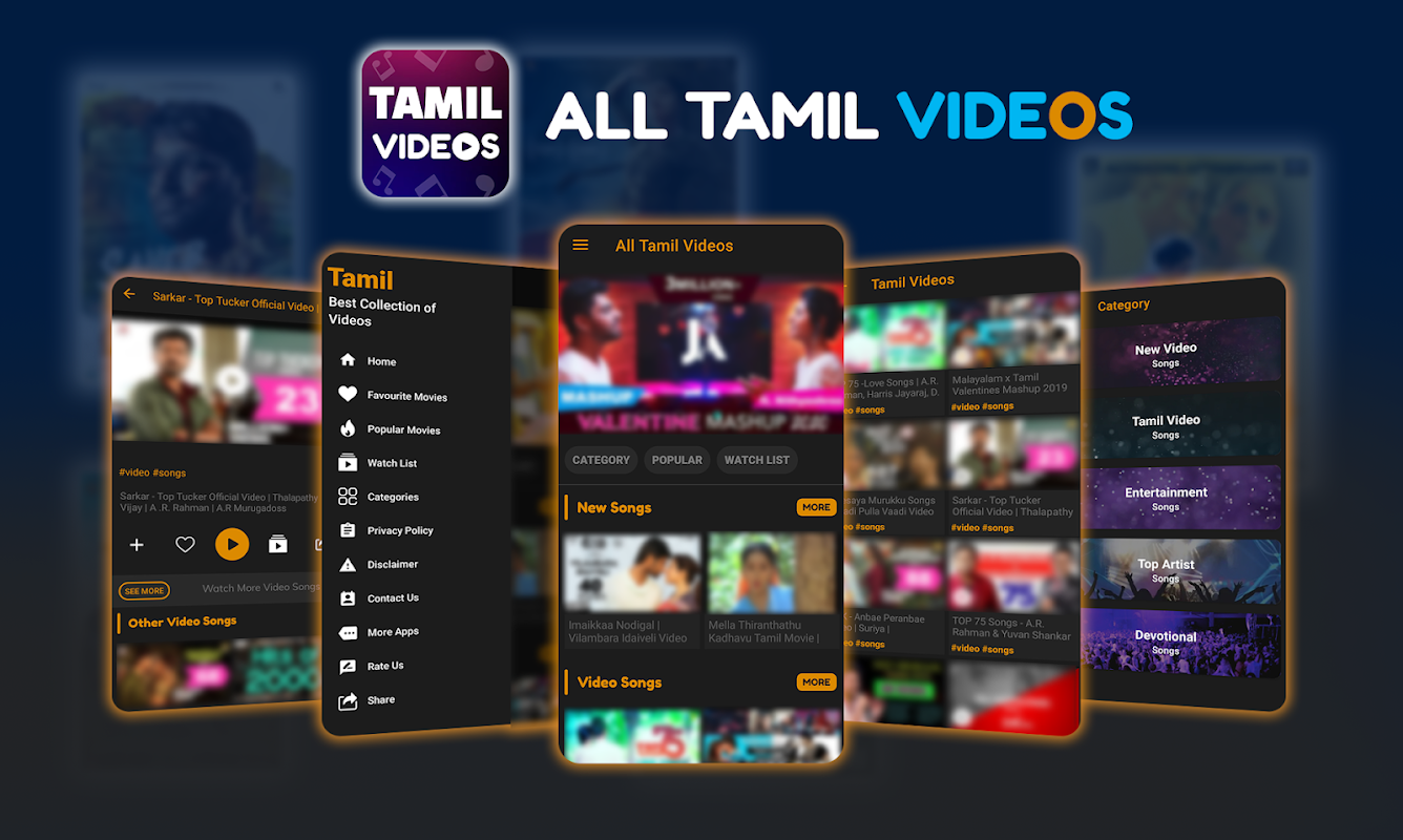 Best Tamil video songs app has new tamil songs & music videos from tamil movies