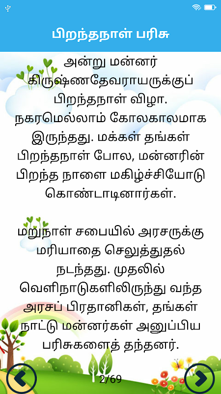 Hiện tại ứng dụng này chỉ tương thích với văn bản và các bản cập nhật thêm có thể đi kèm với hình ảnh, âm thanh và video. Ngoài ra, chúng tôi luôn làm việc để thêm nhiều video Tamil Stories thú vị mới vào ứng dụng này.