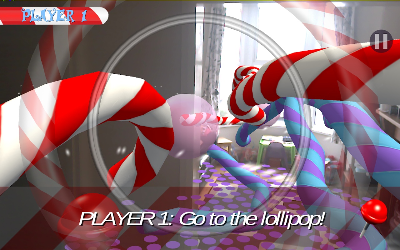 Scan a floor area to play in, walk to the lollipop and then try to get to the next one without touching anything in the augmented world. See how far you can go before you hit something.