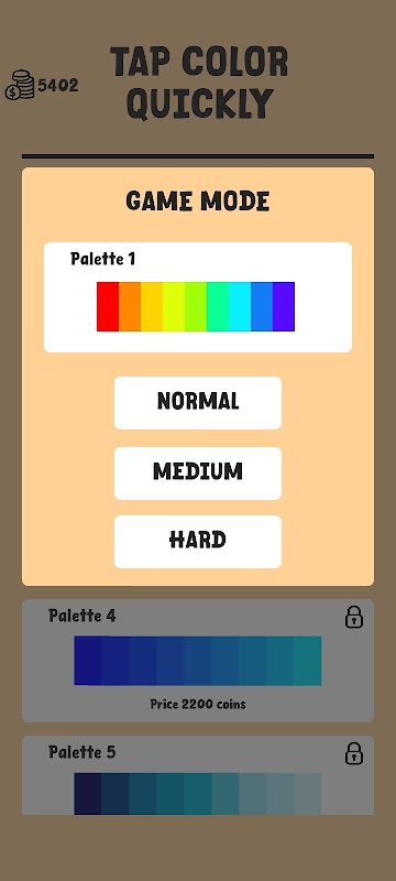 Tap Color Quickly là một trò chơi thú vị về kỹ năng thị giác và tư duy nhanh. Người chơi bắt đầu bằng cách chọn một bảng màu từ một số tùy chọn, mỗi tùy chọn bao gồm 9 màu khác nhau. Trong mỗi vòng, bạn sẽ được yêu cầu tìm một màu cụ thể trong lưới khối 3x3, trong đó mỗi khối đại diện cho một trong các màu trong bảng màu đã chọn.