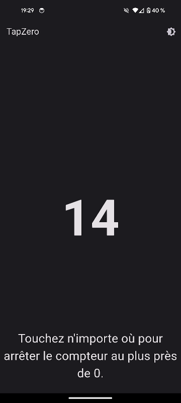 "TapZero" là một ứng dụng được thiết kế để kiểm tra khả năng phản ứng và độ chính xác của người dùng. Người chơi phải chạm vào màn hình tại thời điểm chính xác khi bộ đếm, ban đầu được đặt thành khoảng thời gian ngẫu nhiên từ 10 đến 16 giây, đạt đến số không. Để tăng thêm thử thách, bộ đếm trở nên vô hình trong những giây cuối cùng, buộc người chơi phải đếm thời gian trong đầu hoặc làm theo trực giác của mình. Trò chơi tính toán và hiển thị độ lệch, tính bằng mili giây, giữa thời điểm chạm và thời điểm chính xác khi bộ đếm phải đạt đến số không, cho phép người chơi đo độ chính xác của mình ở mức cực kỳ chi tiết. Với giao diện người dùng trực quan và chế độ tối/sáng có thể điều chỉnh, "TapZero" mang đến trải nghiệm chơi game đơn giản nhưng vô cùng hấp dẫn, hoàn hảo cho bất kỳ ai muốn cải thiện thời gian phản ứng và khả năng tập trung của mình.