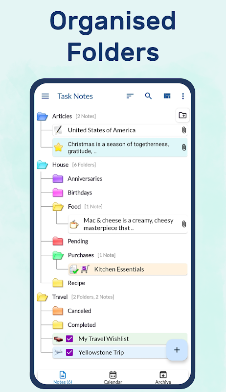 ✭ Quản lý ghi chú, danh sách kiểm tra, danh sách mua sắm, danh sách tạp hóa, đọc chính tả bằng giọng nói, danh sách việc cần làm trong thư mục, lưu trữ và thùng rác