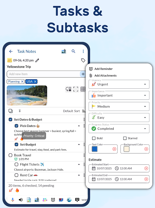 ✭ Notepad cho ghi chú đầy màu sắc, bản ghi nhớ, danh sách việc cần làm, danh sách kiểm tra, danh sách mua sắm, danh sách tạp hóa, danh sách công việc đang chờ xử lý, báo thức và nhắc nhở bằng cách gõ văn bản và giọng nói