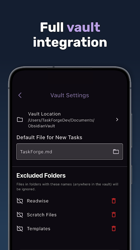Lưu ý: Mặc dù được tối ưu hóa cho kho lưu trữ Obsidian, TaskForge vẫn hoạt động với bất kỳ tệp tác vụ Markdown nào được lưu trữ ở bất kỳ đâu trên thiết bị của bạn.