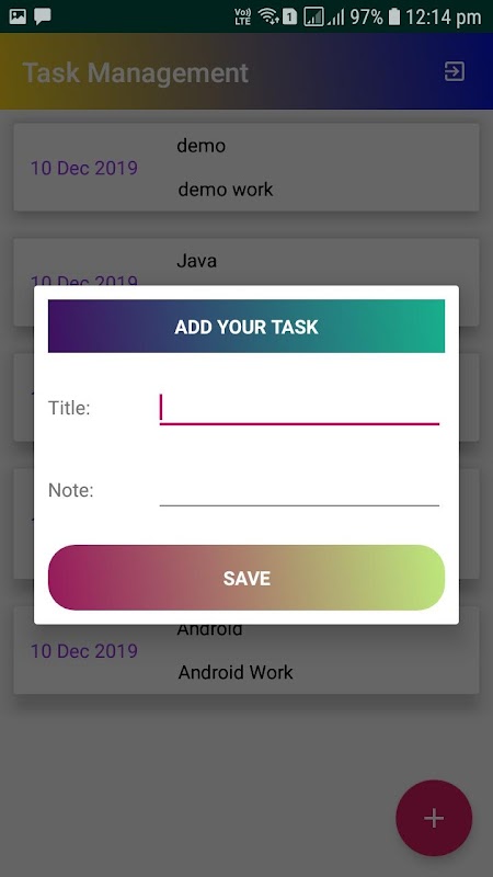 Quản lý tác vụ là một ứng dụng để theo dõi nhiệm vụ hàng ngày dựa trên sự phát triển của bạn. Tôi sẽ giúp tất cả để cải thiện sự nghiệp của anh ấy / cô ấy.