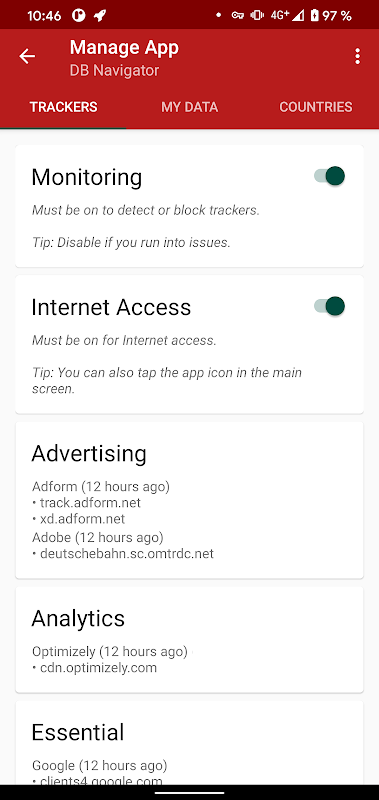 TrackerControl Slim là một ứng dụng Android cho phép người dùng NGHIÊN CỨU việc thu thập dữ liệu ẩn, liên tục, rộng rãi trong các ứng dụng di động về hành vi của người dùng ("theo dõi").