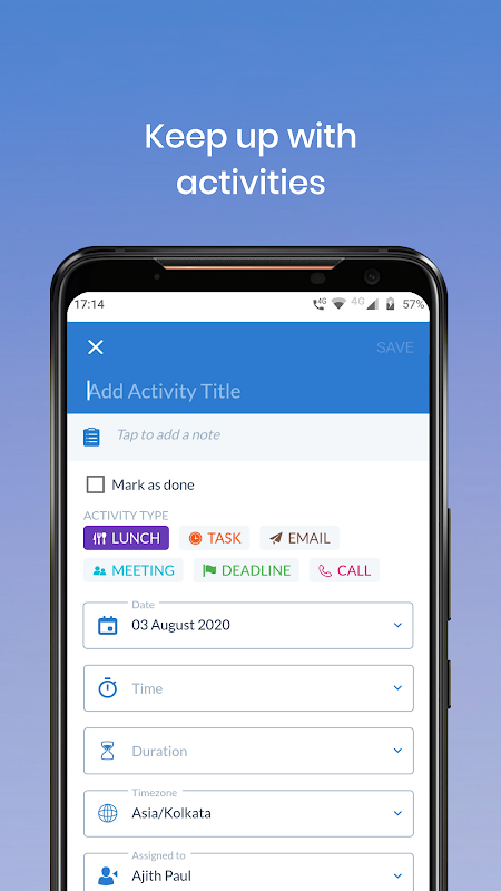 TeamWave on mobile phones puts all your deals, projects, activities, and tasks at your fingertips and keeps you on top of things.