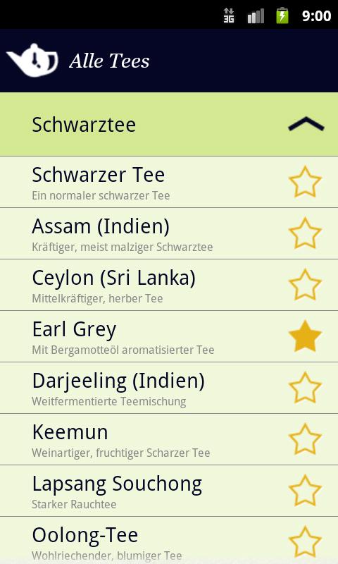 TeaTimer cho phép bạn có nó theo cách của bạn: chọn các loại trà yêu thích của bạn để truy cập nhanh hoặc thay đổi các giá trị nhiệt độ, số tiền hoặc thời gian để phù hợp với sở thích cá nhân của bạn. Bạn cũng có thể thêm các loại trà của riêng bạn để các cơ sở dữ liệu.