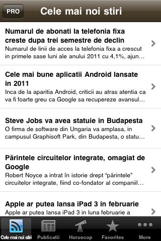Aplicatia contine informatii din cele mai importante site-uri de stiri si informatii din Romania.