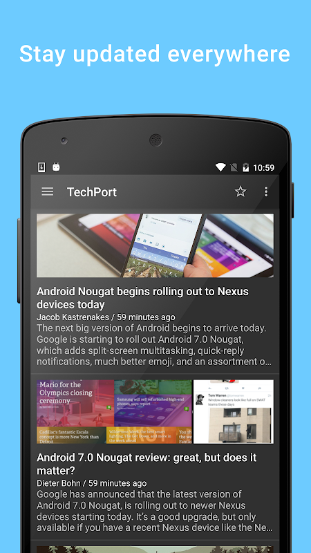 TechPort là một cách dễ dàng để truy cập tin tức công nghệ và thông tin cập nhật từ các nguồn tin trực tuyến tốt nhất như The Verge, TechCrunch, Engadget, Ars Technica, The Next Web và nhiều hơn nữa ...