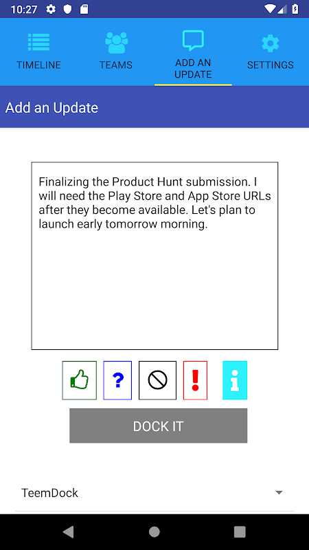 TeemDock allows teams to stay updated easily and then cancel meetings when they're not needed. Give your teammates back the time they deserve. Keep your team in flow state, achieving goals and milestones at a pace uninterrupted by unnecessary meetings.