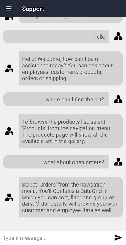 Một bản demo minh họa UI Telerik cho Xamarin, Azure và Bot Framework