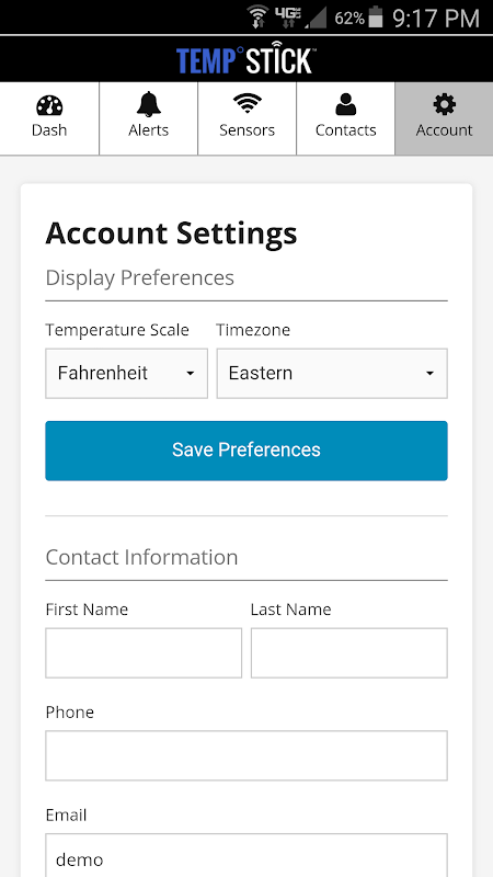 Ứng dụng này cho phép bạn truy cập vào tất cả các tính năng có sẵn cho cảm biến Temp Stick của bạn. Đăng nhập từ thiết bị di động Android của bạn và xem lịch sử và bài đọc cảm biến. Quản lý và tùy chỉnh các quy tắc kích hoạt cảnh báo và cài đặt tin nhắn. Để demo ứng dụng, đăng nhập bằng tên người dùng và mật khẩu 'demo'. Vui lòng gọi điện thoại hoặc hỗ trợ qua email nếu bạn cần hỗ trợ, đã tìm thấy lỗi hoặc muốn yêu cầu / đề xuất một tính năng cụ thể mà bạn cần.