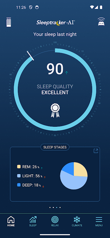Hệ thống Sleeptracker-AI® theo dõi cả nhịp thở và nhịp tim một cách chính xác suốt đêm để phân tích giấc ngủ sâu hơn, với dữ liệu của bạn được hiển thị dưới dạng biểu đồ dễ đọc trong ứng dụng.