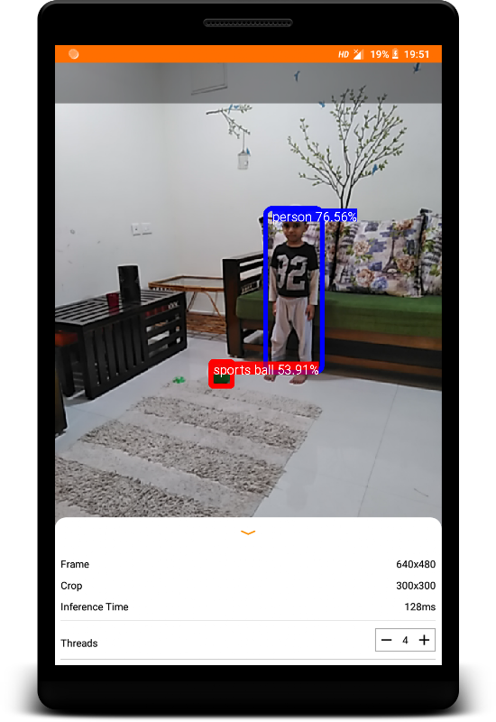 This is a camera app that continuously detects the objects (bounding boxes and classes) in the frames seen by your device's back camera, using a quantized MobileNet SSD model trained on the COCO dataset. These instructions walk you through the building and running the demo on an Android device.