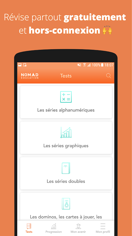 🚀 Tests de Logique de Nomad Education est l’application GRATUITE pour améliorer tes aptitudes psychotechniques et réussir les TESTS DE LOGIQUE des Concours d’entrée en Ecole de Commerce et en Master !