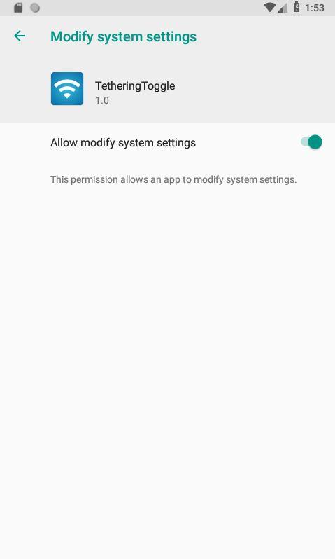 The app lets you toggle WiFi tethering with single tap. Tapping the program icon enables the tethering and displays notification. Tapping it again disables the tethering and displays notification.