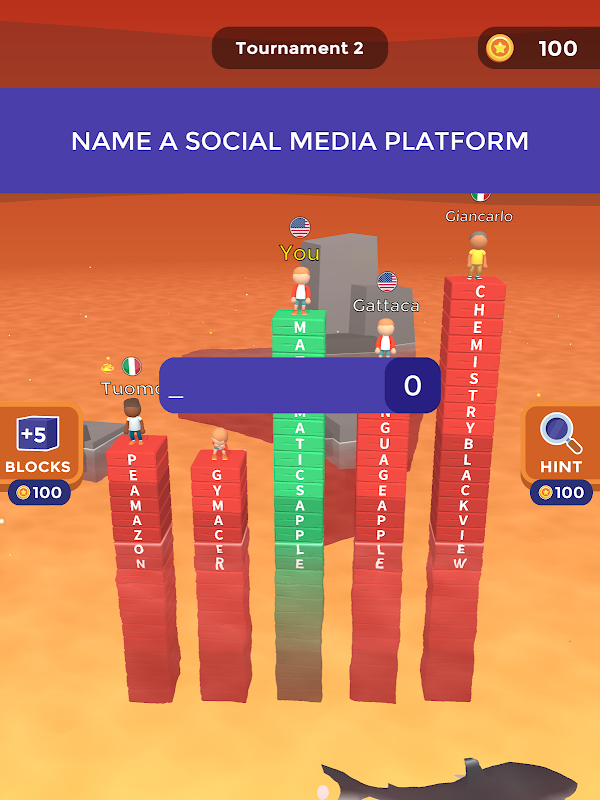 Câu trả lời dài nhất sẽ thắng! Trả lời mỗi câu hỏi bằng câu trả lời dài nhất mà bạn có thể nghĩ ra để xây dựng tòa tháp của mình và thoát khỏi dòng nước đang dâng cao! Text or Die là một trò chơi đánh máy có một chút thay đổi: bạn cần phải vượt qua đối thủ và tránh bị ăn thịt! Trò chơi nhắn tin này có rất nhiều bài tập đánh máy gây nghiện và thử thách trí não!