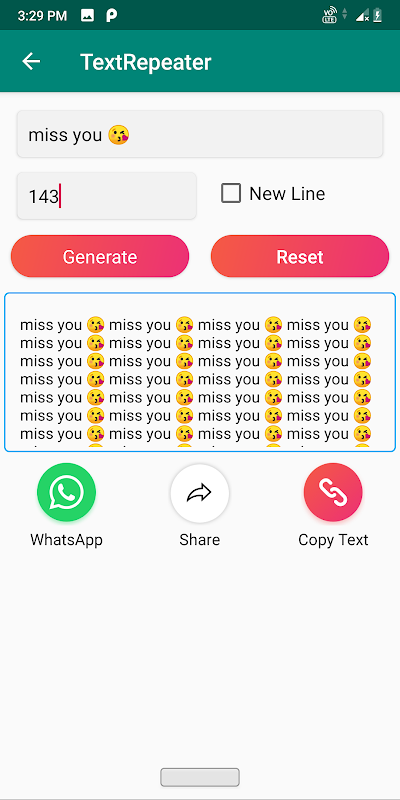 Repeated text, If you want to send a single message different styles or repeated times, you can achieve with this app. All the text utilities can be done with this app.