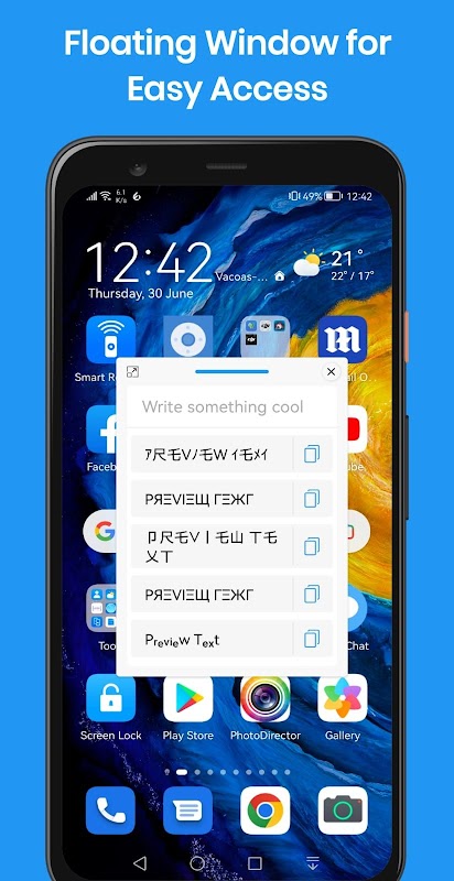 Nhưng chờ đã, còn nhiều hơn thế nữa! Kiểu văn bản không chỉ mang tính thẩm mỹ mà còn mang tính tiện lợi. Ứng dụng của chúng tôi tích hợp liền mạch với các nền tảng nhắn tin yêu thích của bạn bằng cửa sổ nổi, giúp bạn dễ dàng thêm tia sáng bổ sung đó vào cuộc trò chuyện của mình. Chúng tôi đã làm mọi việc trở nên đơn giản để bạn có thể tập trung vào điều thực sự quan trọng: thể hiện bản thân bằng phong cách.