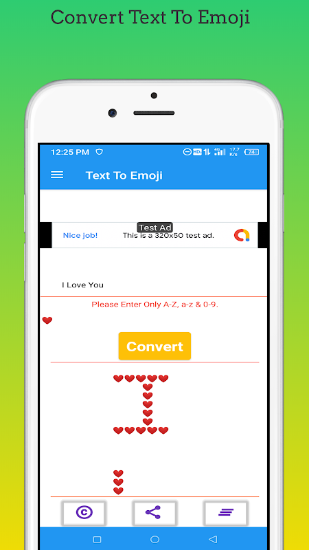 The special advantage of Text To Emoji application is that the emoji created through this app supports all social media.