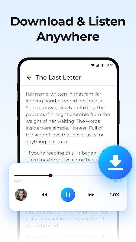 Khám phá tương lai của việc đọc với Trình đọc văn bản thành giọng nói - AI. Chuyển đổi, lắng nghe và tận hưởng nội dung yêu thích của bạn theo cách chưa từng có. Cách đọc của bạn. Giọng nói của bạn. Theo cách của bạn. Tải xuống trình đọc TTS miễn phí!