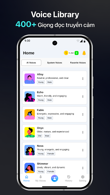 Chuyển đổi văn bản thành giọng nói tự nhiên với ứng dụng Text to Speech - AI Voices. Dễ dàng nghe sách, tài liệu, hình ảnh và PDF được đọc bằng giọng nói chân thực như con người, được hỗ trợ bởi công nghệ AI tiên tiến.