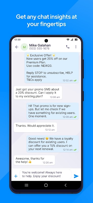 - có các cuộc hội thoại SMS hai chiều