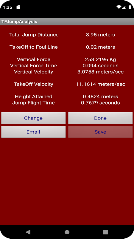 Dữ liệu đầu vào của Phân tích bước nhảy bao gồm Chiều cao của vận động viên, Trọng lượng của vận động viên, Gia tốc theo chiều dọc, Tốc độ tiếp cận & Góc, Dữ liệu tiếp đất hoặc Dữ liệu biểu mẫu. Các giá trị được tính toán cho đầu vào được chỉ định bao gồm Khoảng cách hoặc Chiều cao Nhảy, Lực dọc & Vận tốc, Độ cao đạt được & Thời gian Nhảy. Các giá trị cụ thể có thể được sử dụng để ước tính mức độ bền cần thiết.