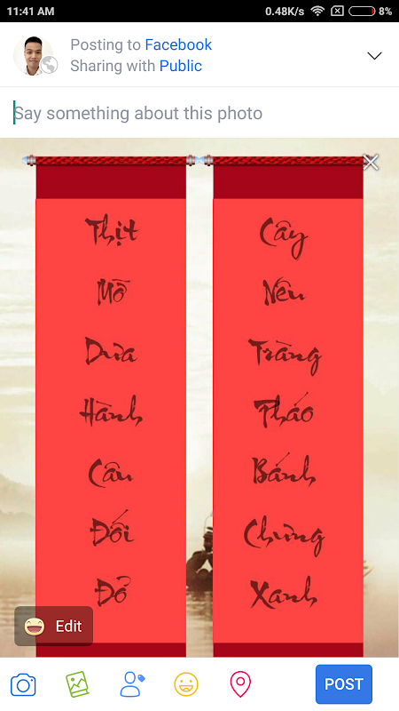 - Chỉnh sửa nội dung câu đốt Tết, chữ thư pháp ông đồ theo ý muốn của bạn.