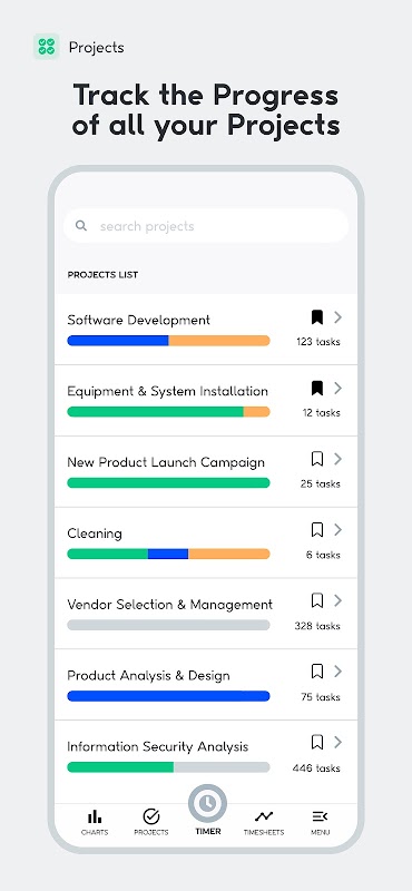 • Tạo các nhiệm vụ bên trong các dự án khác nhau và bắt đầu theo dõi thời gian của bạn trên chúng