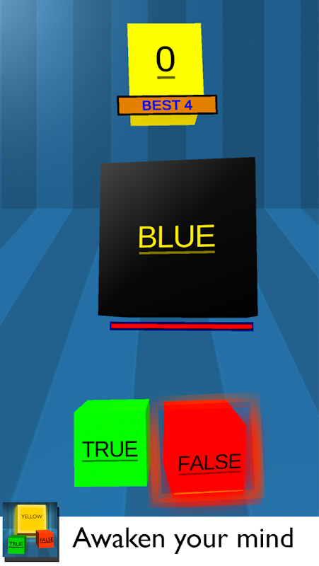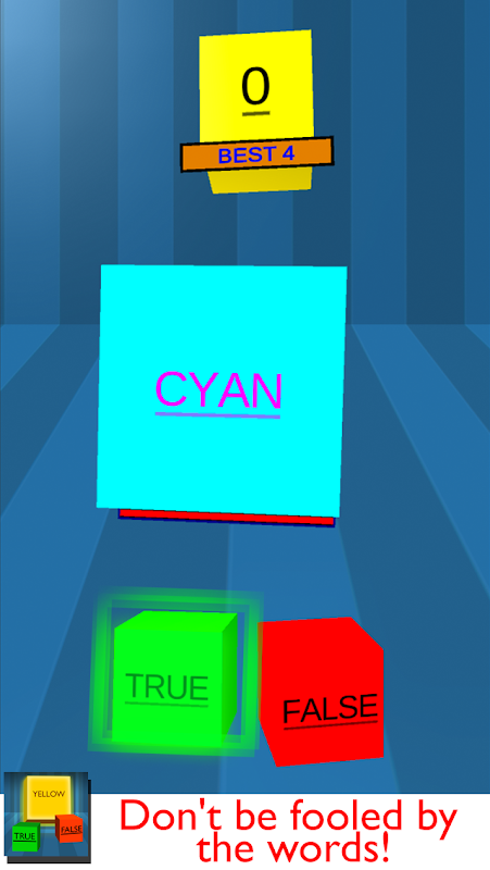 * The Cube Color: True Color Puzzle is a game inspired by the Stroop effect. You need to check if the name of the color written matches with the color displayed.