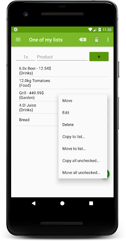 Một mục và nhiều mục có thể dễ dàng di chuyển hoặc sao chép vào danh sách mua sắm khác.