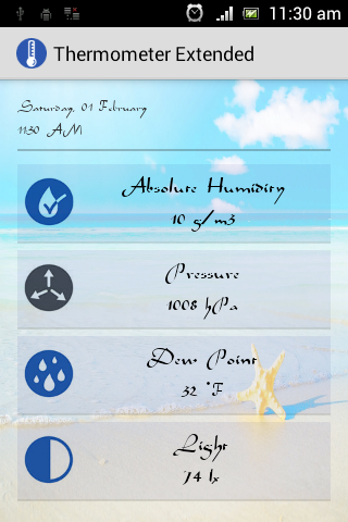 Keywords: thermometer, temperature, ambient conditions, sensors, weather, humidity, pressure, free, ad-free