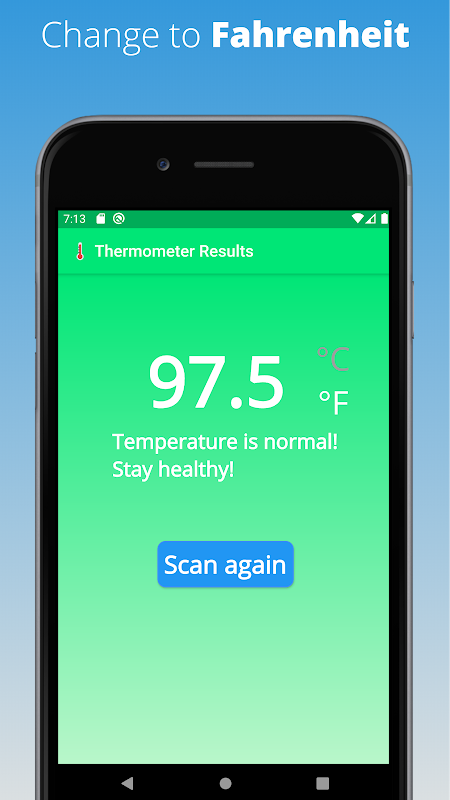 This thermometer app is perfect for the job! All the features of a forehead thermometer in the convenience of your smartphone! No need to be unsure about your current temperature anymore, just scan your temperature anywhere at your convenience today!