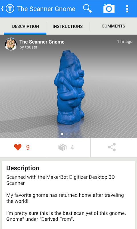 Since photos are so easily uploaded to Thingiverse from the app, it's super simple to share images of your prints with the community. Update your profile and cover images from your phone, too.