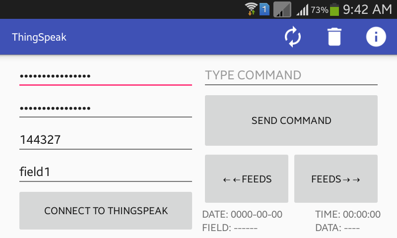 3. Tập CONNECT TO THINGSPEAK nút để kết nối ứng dụng với ThingSpeak máy chủ.
