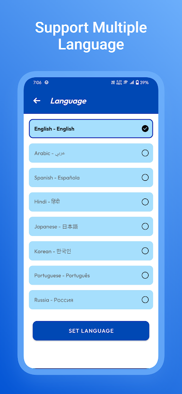 Chúng tôi hiểu nhu cầu đa dạng của người dùng trên toàn thế giới. Đó là lý do tại sao chúng tôi hỗ trợ nhiều ngôn ngữ, đảm bảo trải nghiệm thân thiện với người dùng cho mọi người. Điều hướng ứng dụng một cách dễ dàng, bất kể ngôn ngữ ưa thích của bạn!