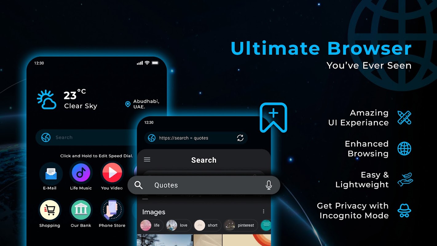 Tạo lối tắt cho mọi thứ để duyệt nhanh bất cứ lúc nào. Có một trình quản lý tải xuống sẵn có quản lý tất cả các video đã tải xuống trên thiết bị của bạn và mọi tệp được tải xuống trong nhiều luồng, điều này có thể giúp tải xuống nhanh chóng hiệu quả hơn bất kỳ tệp và video nào, v.v. Với chế độ trình duyệt ẩn danh, bạn có thể duyệt web riêng tư mà không lưu trữ tìm kiếm trong lịch sử trình duyệt.