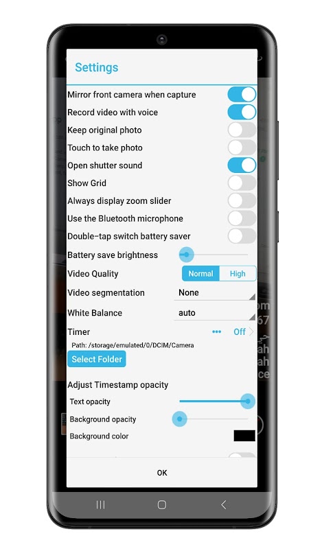 - Hỗ trợ thay đổi độ mờ và nền của dấu thời gian