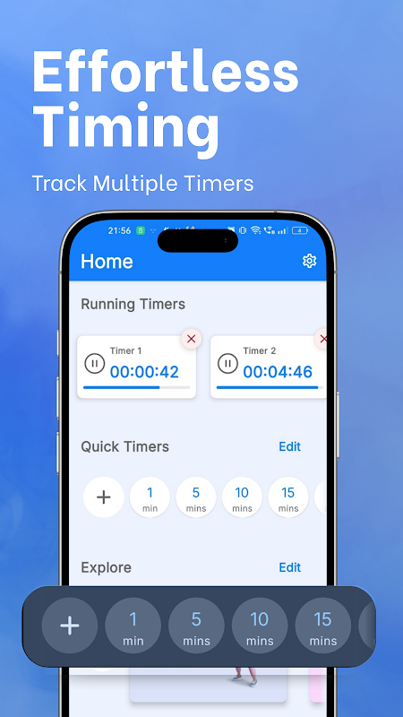 Multi Timer cho phép bạn đặt nhiều hẹn giờ cùng lúc – hoàn hảo cho các buổi nấu ăn, tập luyện, học tập và năng suất. Sử dụng như hẹn giờ đếm ngược, hẹn giờ trực quan hoặc hẹn giờ tập trung để luôn theo dõi lịch trình của bạn. Mỗi hẹn giờ có thể tùy chỉnh bằng cảnh báo âm thanh và rung để bạn không bao giờ bỏ lỡ nhịp nào.