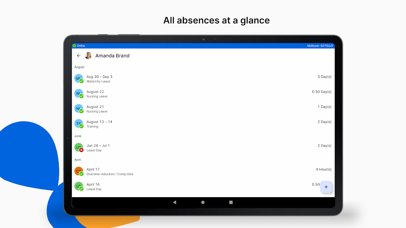 In addition to leave days and comp time, absence information now shows quota for custom absence types.