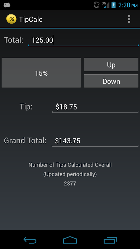 Một máy tính tip đơn giản cho điện thoại Android của bạn. Thực hiện điều chỉnh đấm tỷ lệ đơn giản và dễ dàng. Cùng với một tính toán một liên lạc của tip.