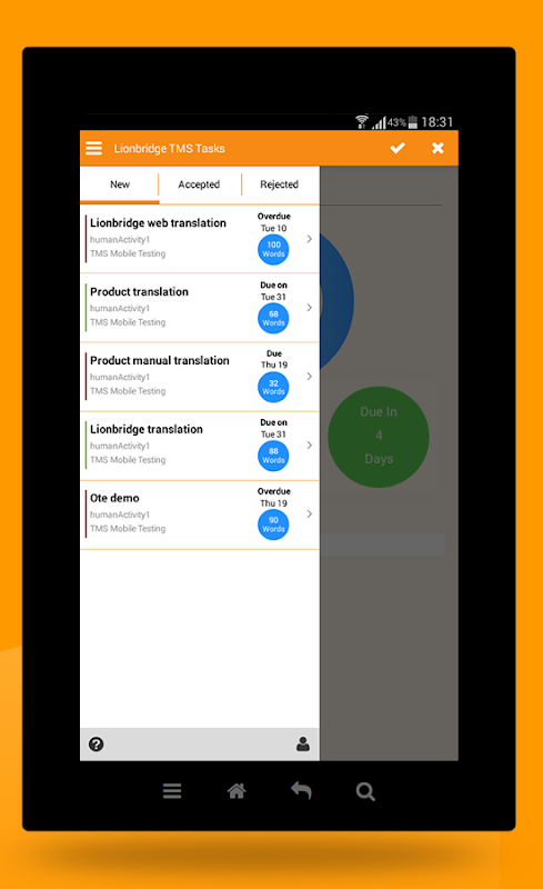 để chấp nhận / từ chối nhiệm vụ TMS. Người dùng mới yêu cầu để đăng ký như là một đối tác Lionbridge để truy cập vào ứng dụng này.