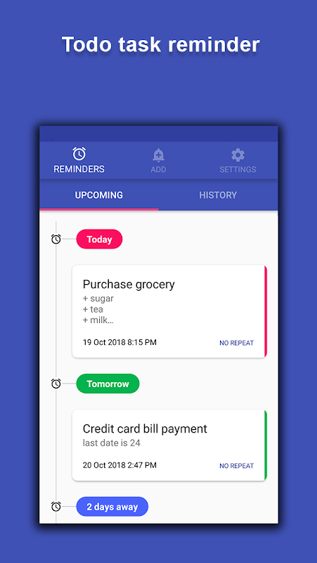 ★ Tự động lưu trữ các nhắc nhở hoàn thành trong lịch sử.