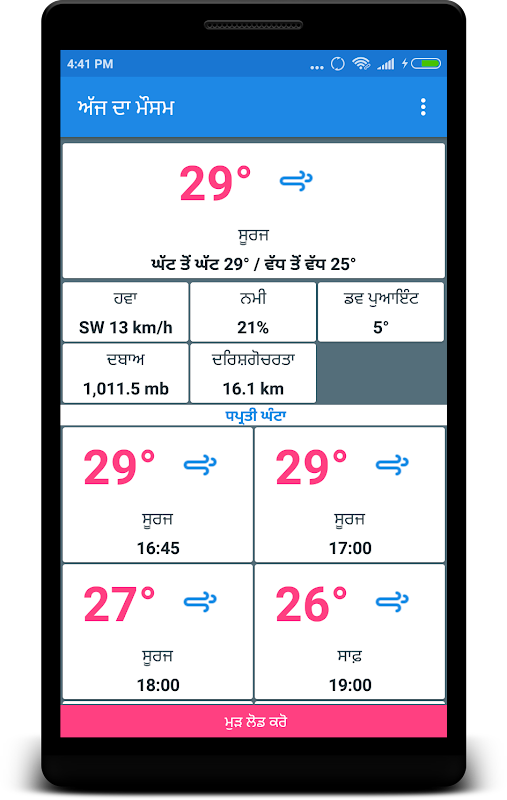 Now You can check out your current location weather info as well as an hourly weather forecast in your Punjabi Language.